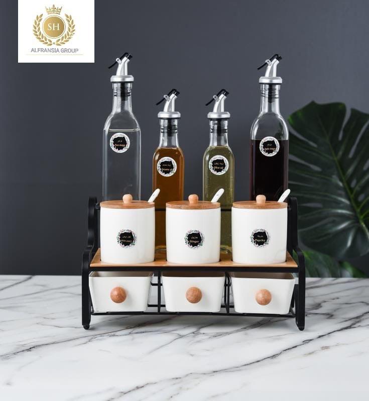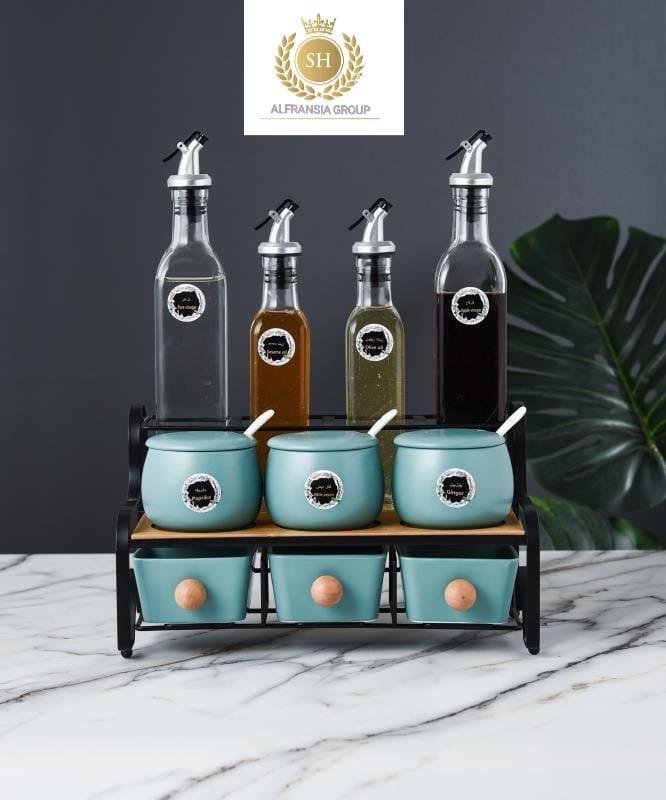 أطقم توابل ١١ قطعه علي حامل استيل SH