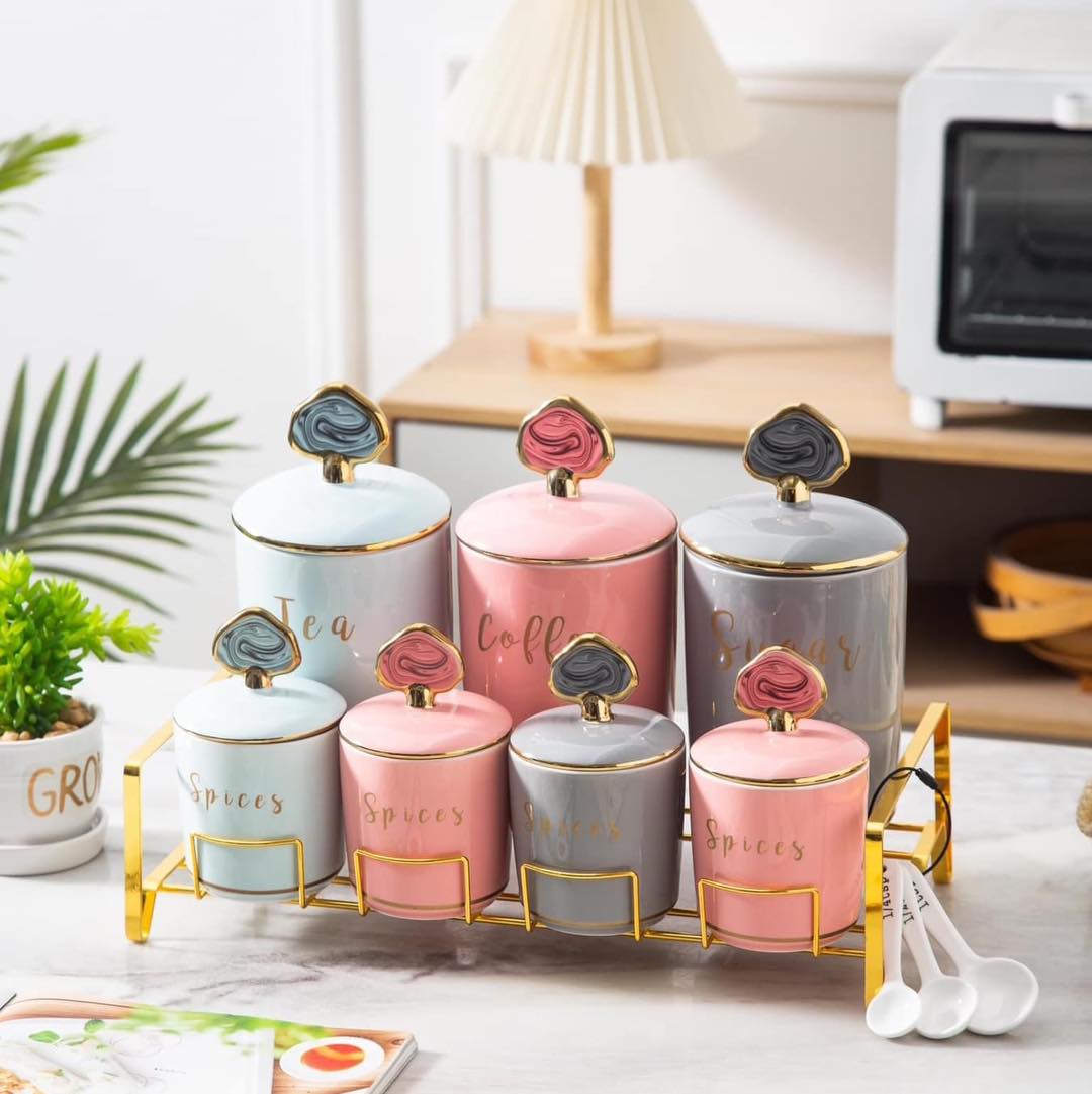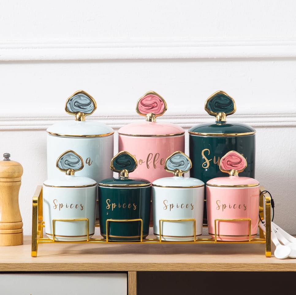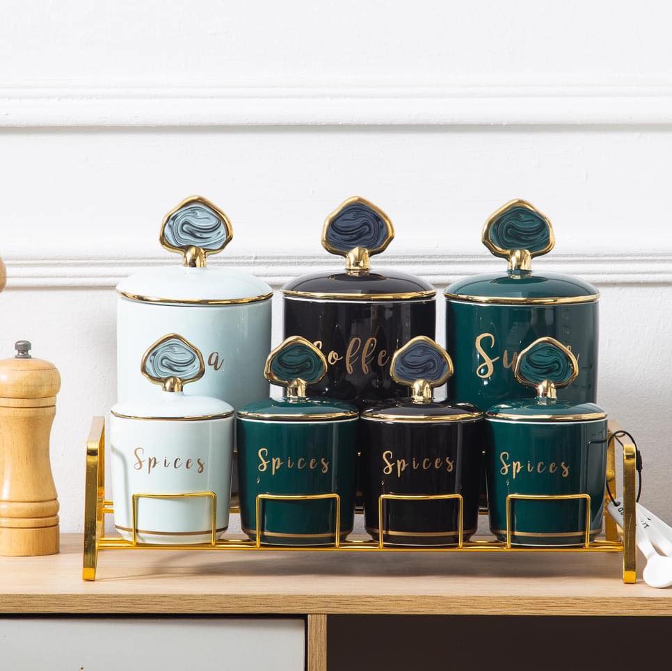 طقم توابل بورسلين ١١ ق على حامل مودرن