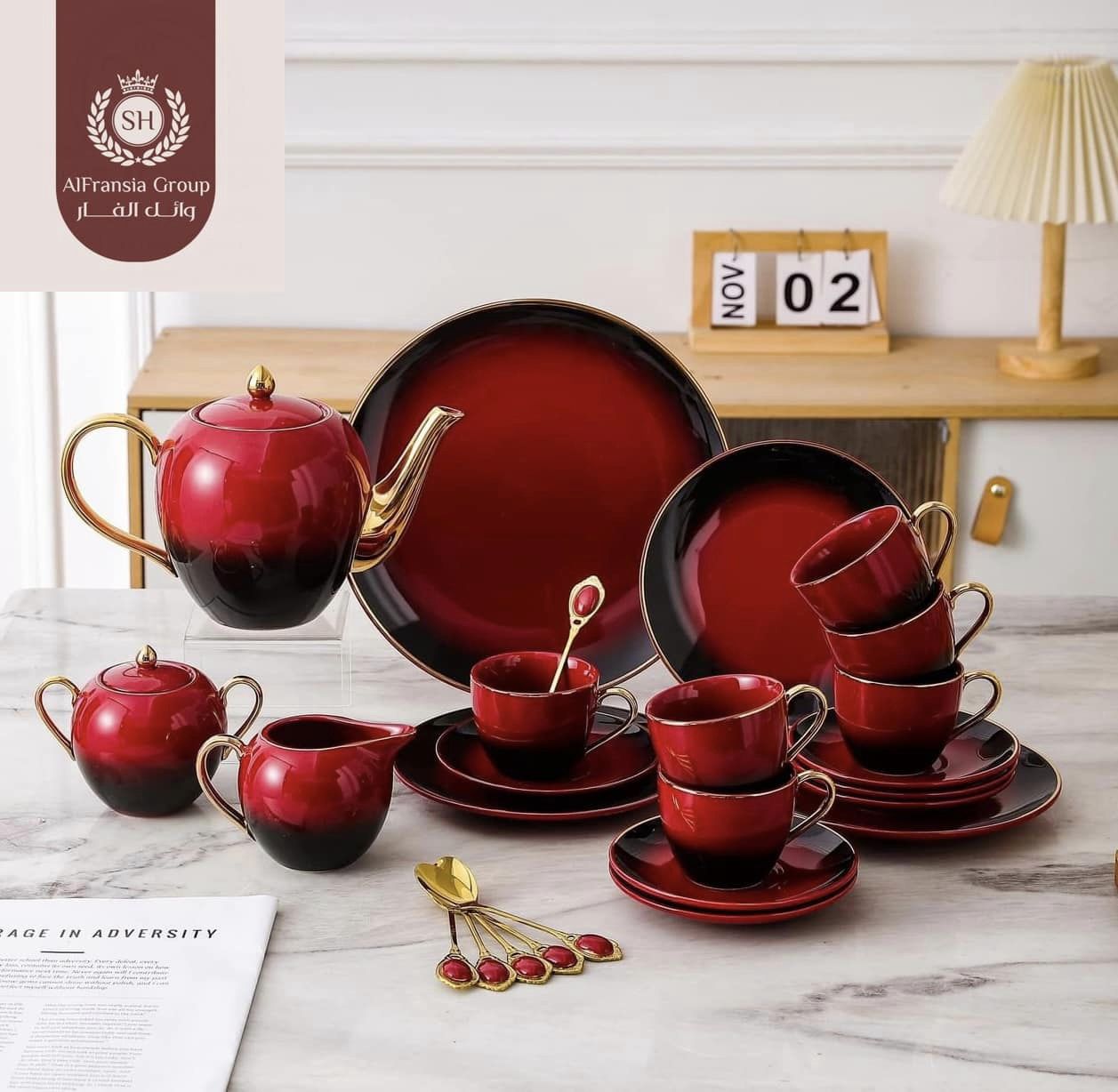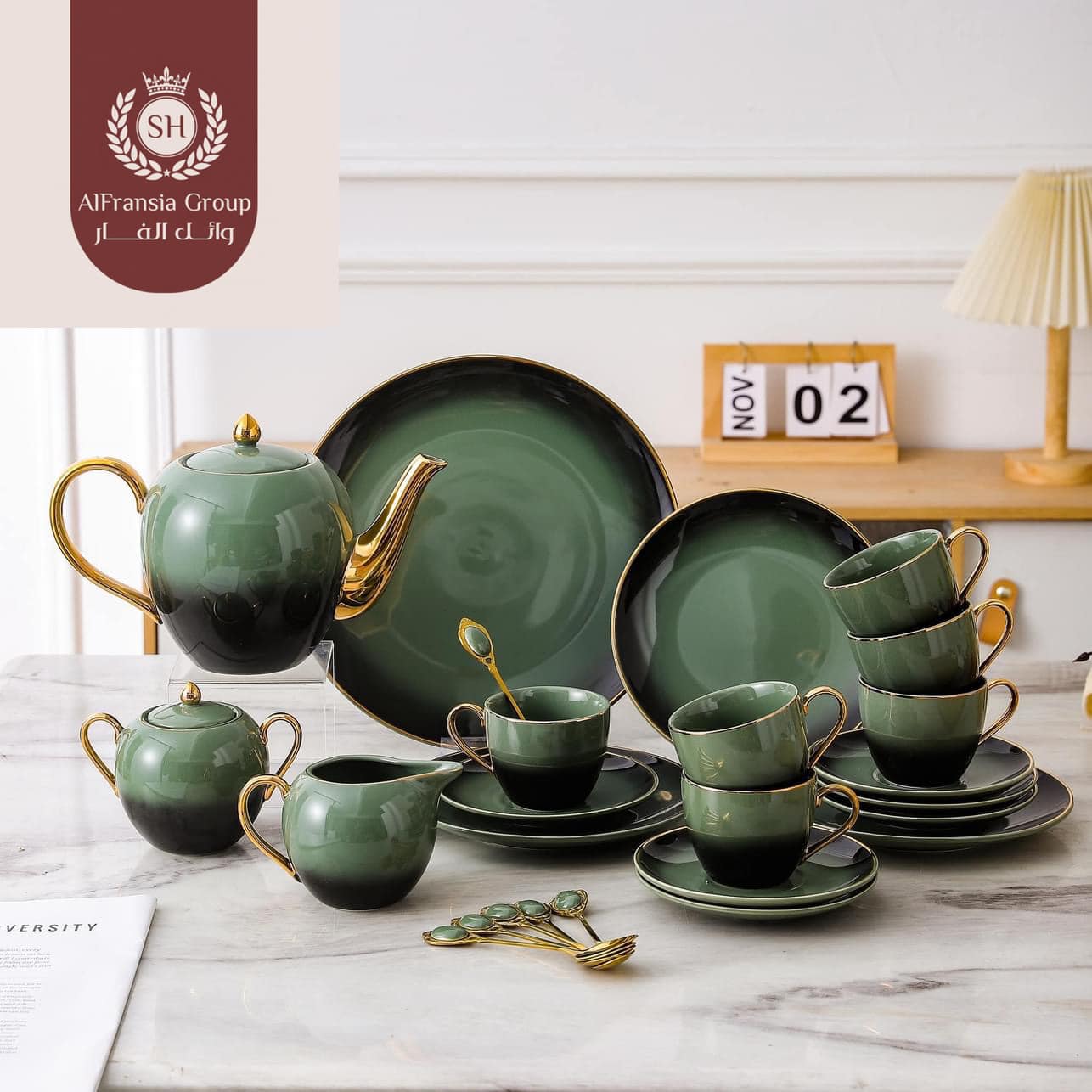 الطقم مطعم بأجود انواع الذهب