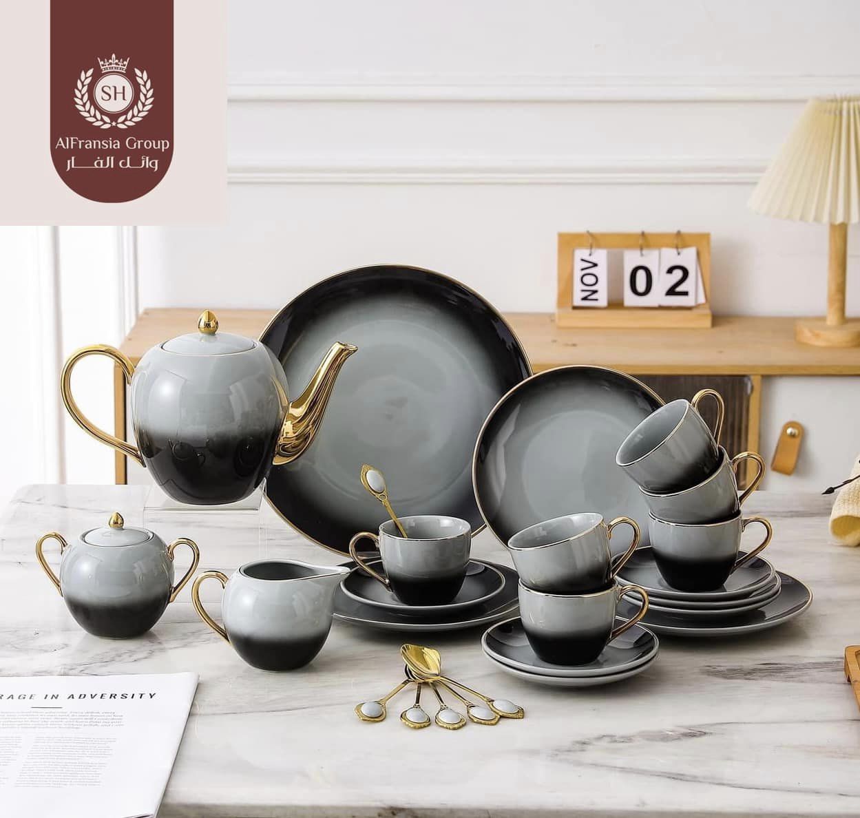طقم شاي مع سرفيس جاتوه كامل ٣٠ق