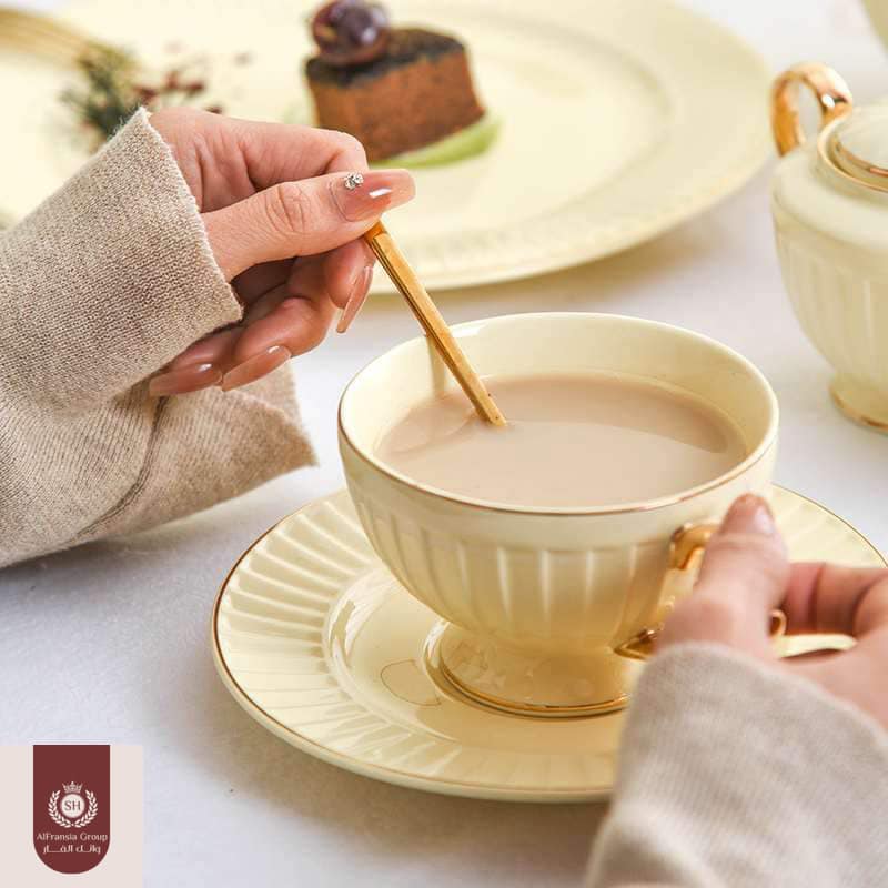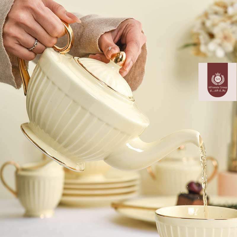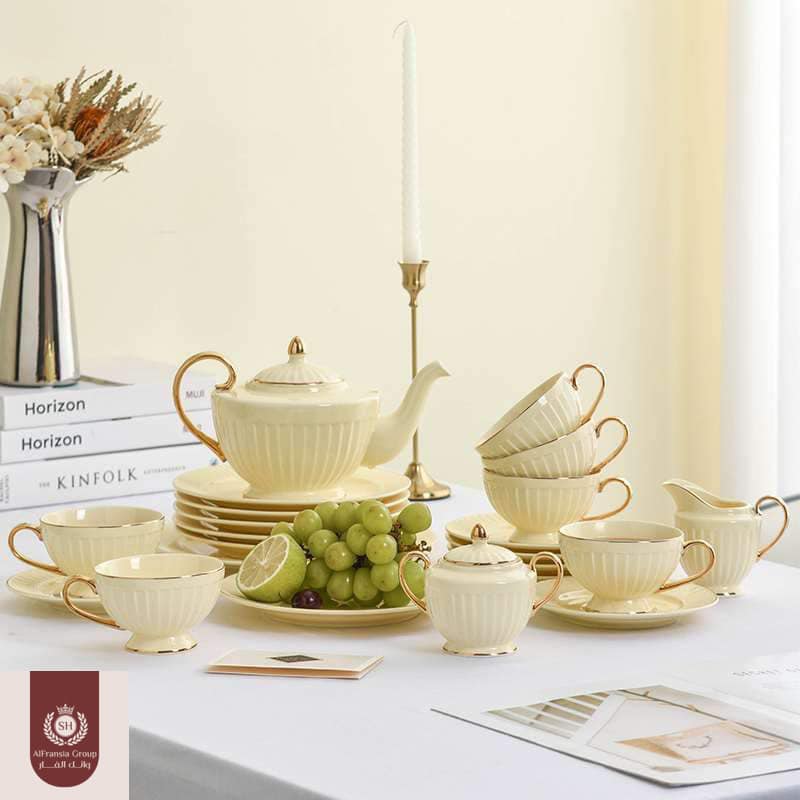 طقم شاي و جاتوه 24 قطعه بلونه الكريمى المتميز 💛