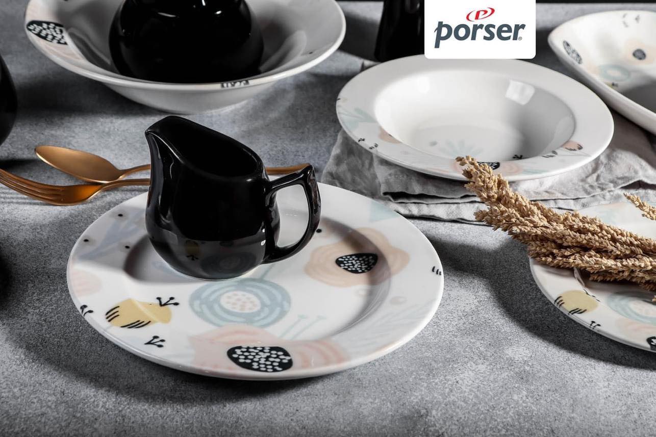 طقم عشاء 45 قطعة مدور، ماركة بورسر التركية، خامه ستون وير