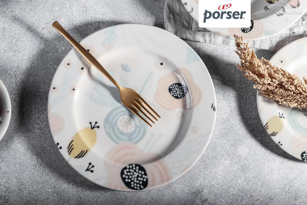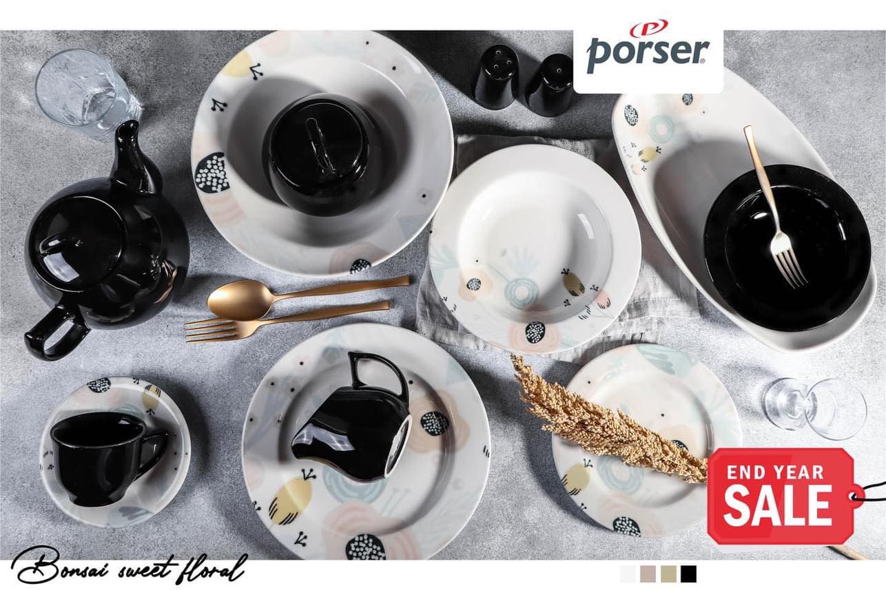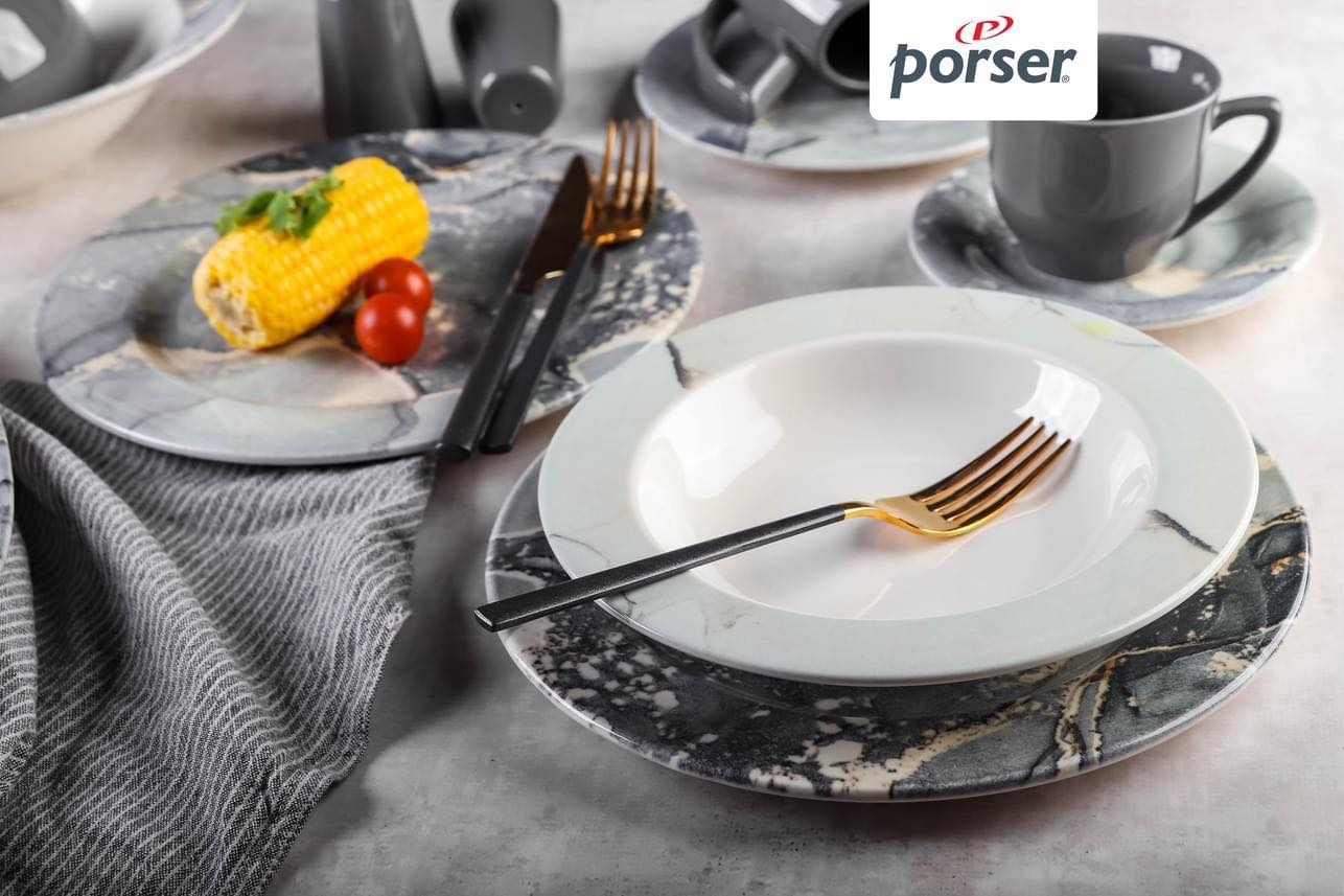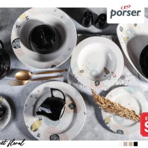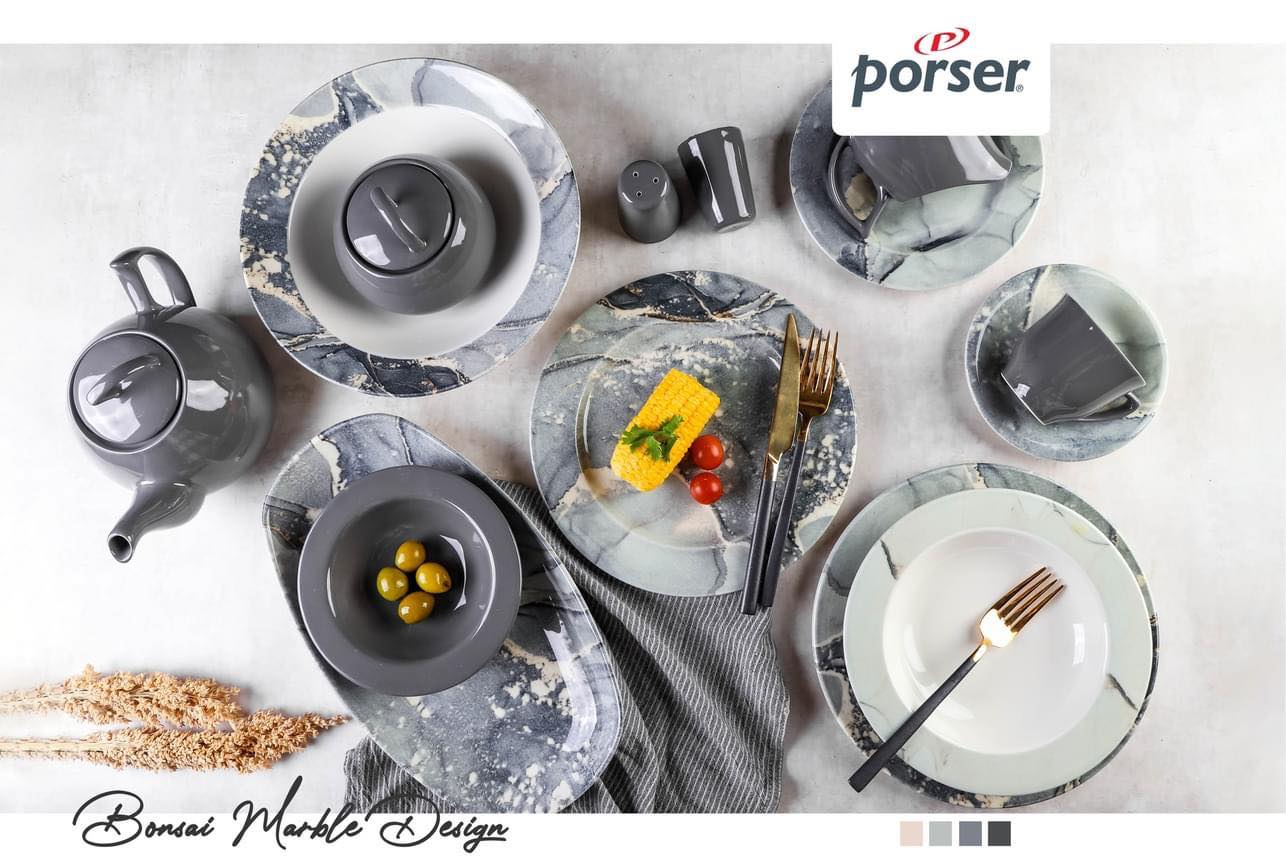طقم العشاء 45 قطعة مدور، ماركة بورسر التركية، خامه ستون وير