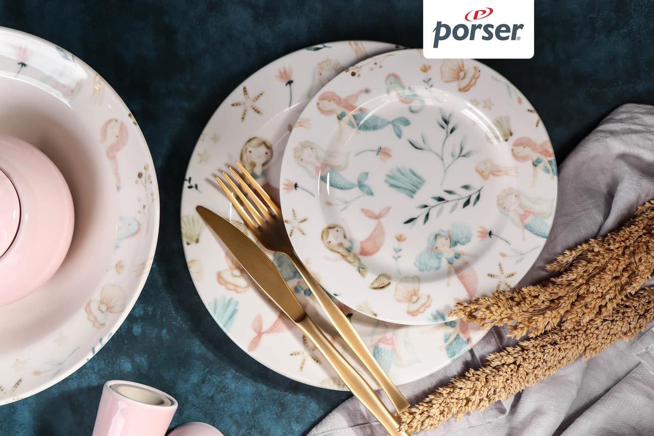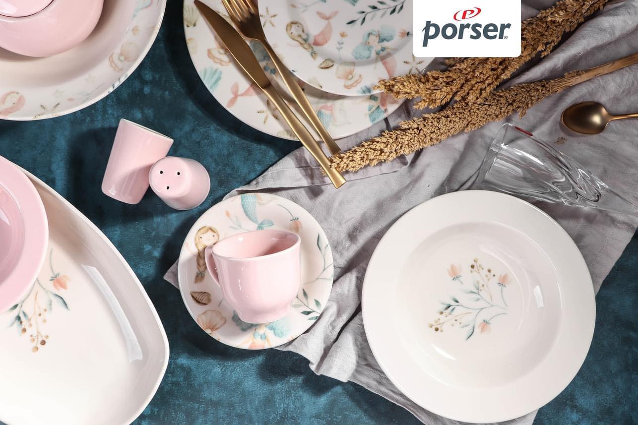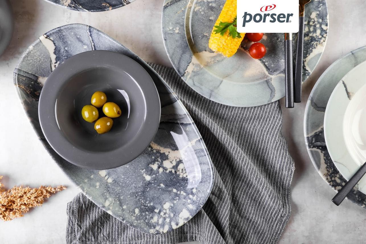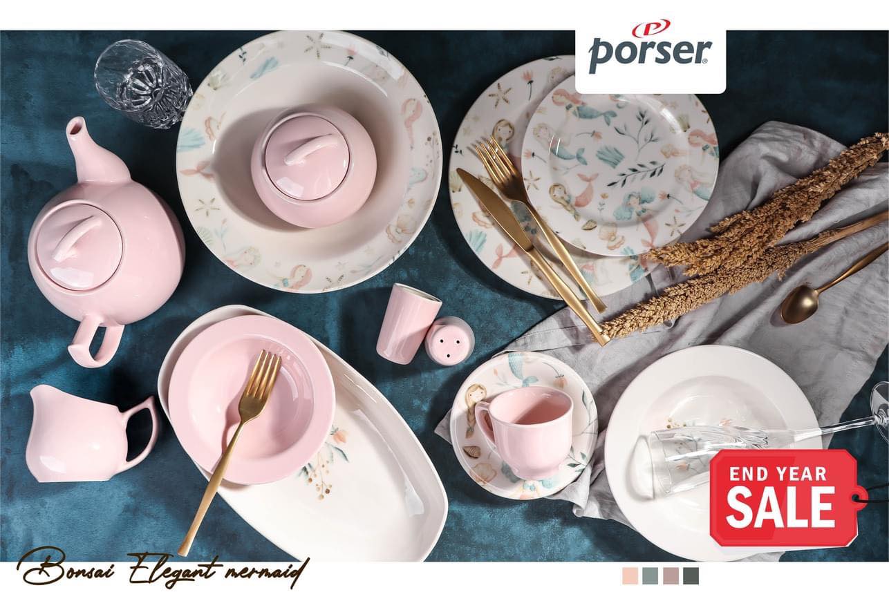 طقم العشاء 45 قطعة مدور، ماركة بورسر التركية، خامه ستون وير
