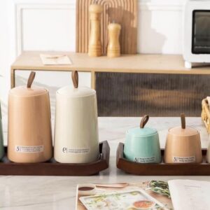 1 ق صنيه بامبو حامل توابل مقاوم للماء