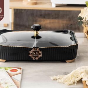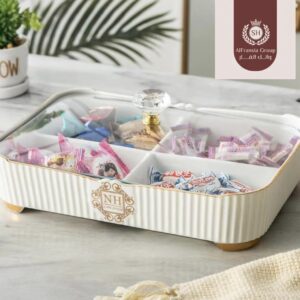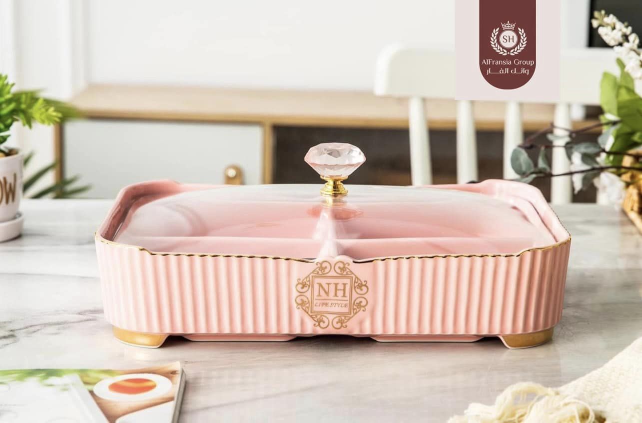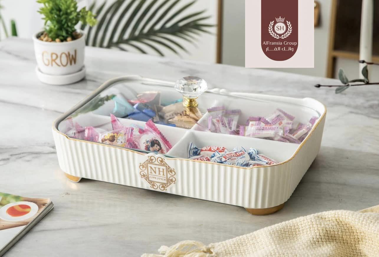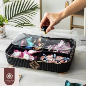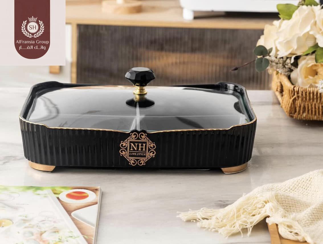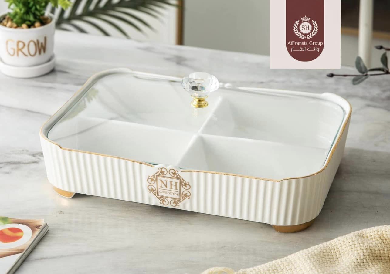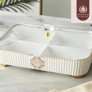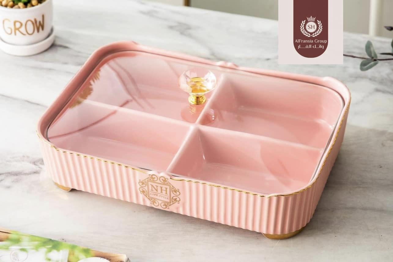 طبق مقسم كبير بغطاء زجاج